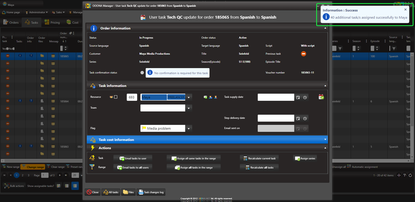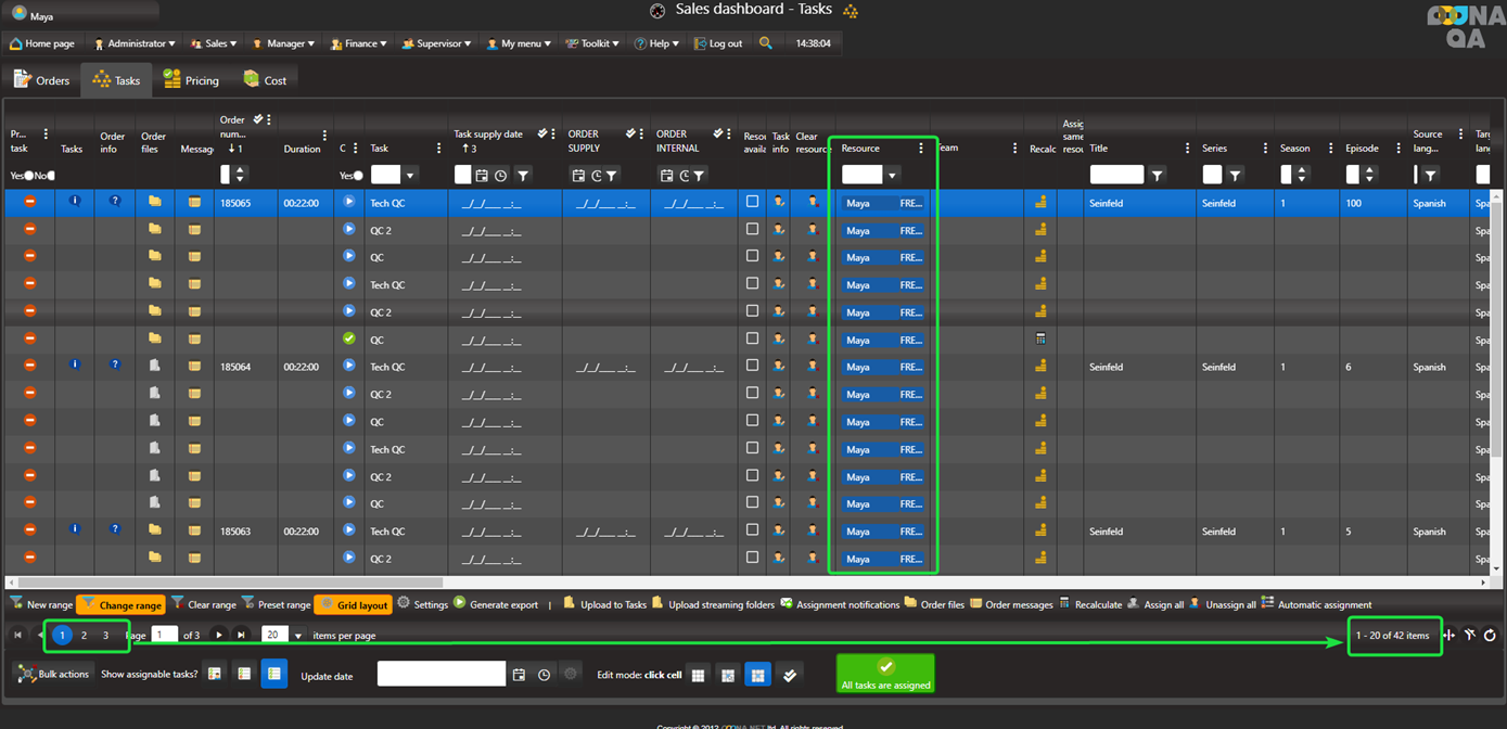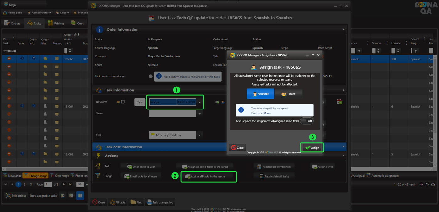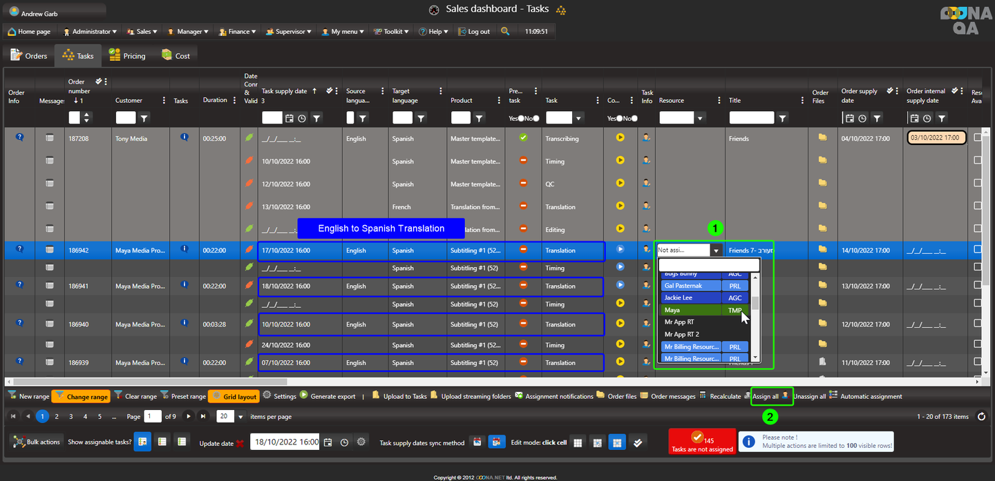 This tool will assign the same resource to all the same tasks in the order range (meaning all pages), and not only on the current page as the “Assign all” tool that was introduced in the previous example.