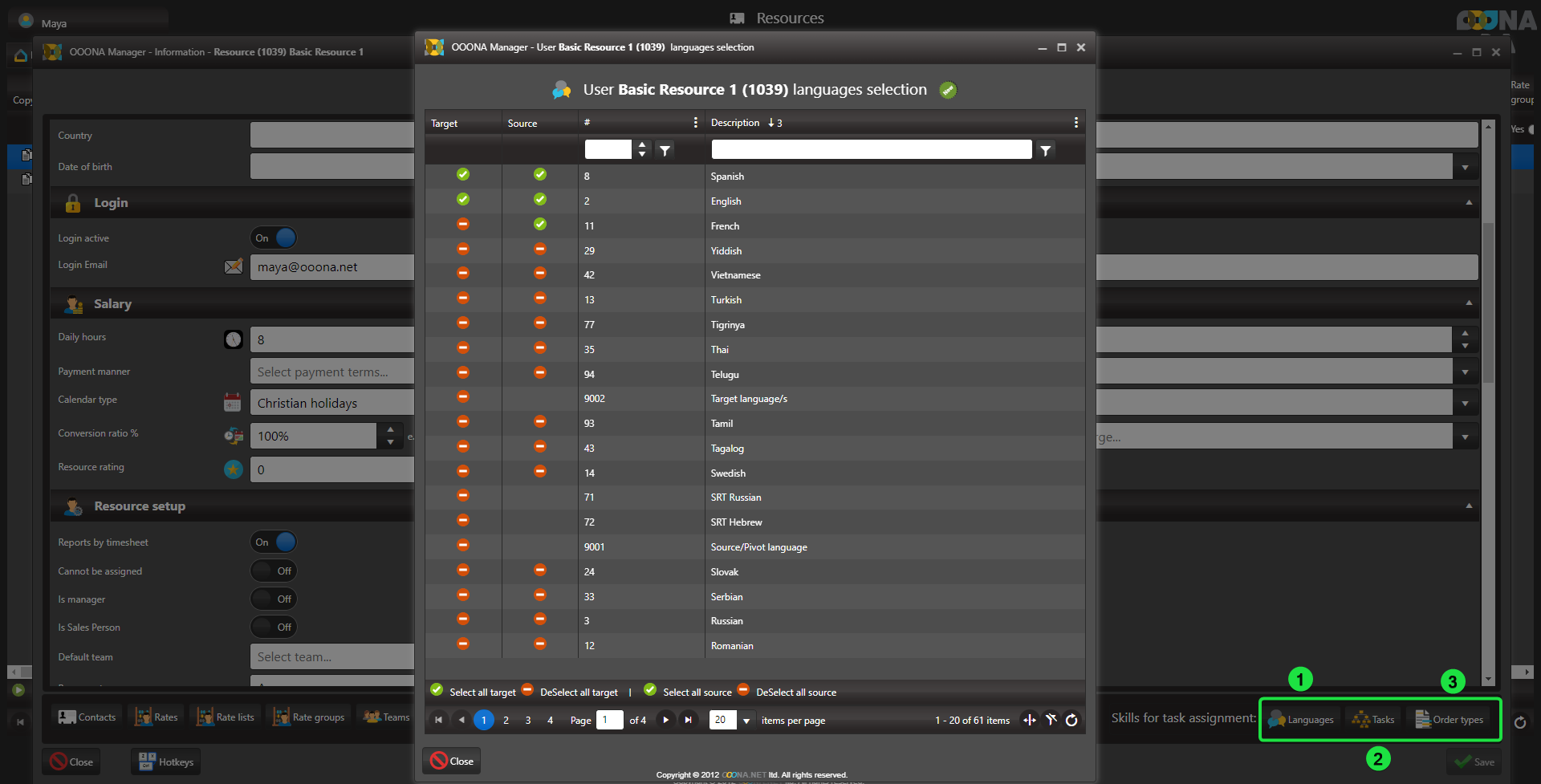 Set the resources skills for task assignment. This will determine to which tasks this resource can be assigned.