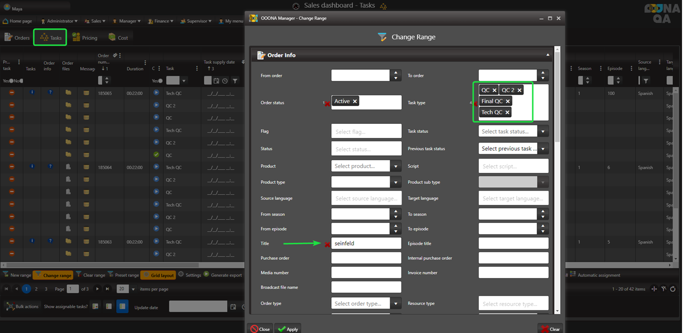 If not all tasks from the order range are displayed in the “Tasks” tab, try clicking “All tasks” (fig 2) to show the missing tasks.