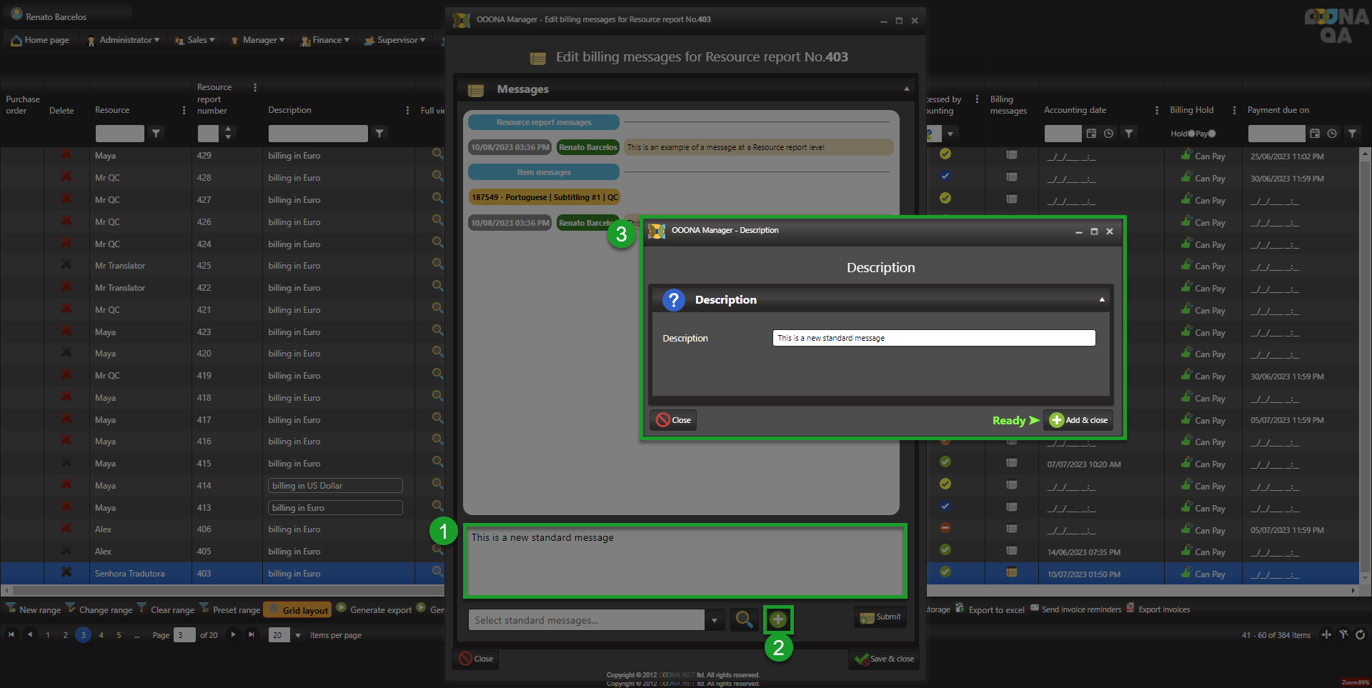 Confirm the description that will be shown on the list of standard messages and click “Add & close”