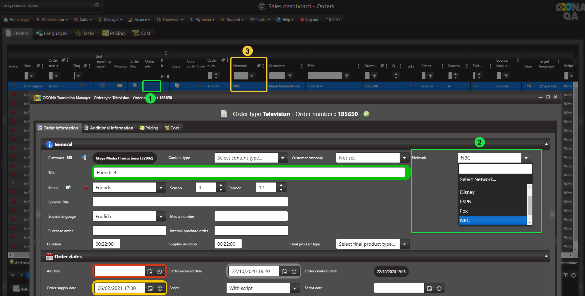 For example, OOONA manager currently doesn’t have a field to enter the “Network” value in. If the “Network” value is required you can use the Custom field for this purpose.
