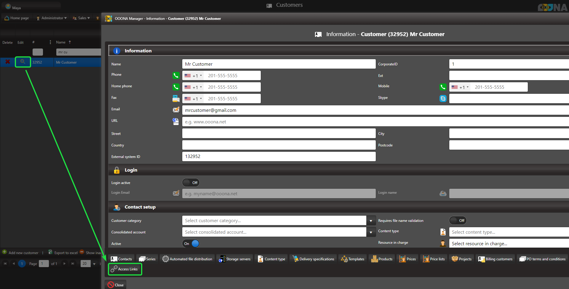 From: Sales/Manager > Rolodex tables > Customers > Magnifying glass > Access links