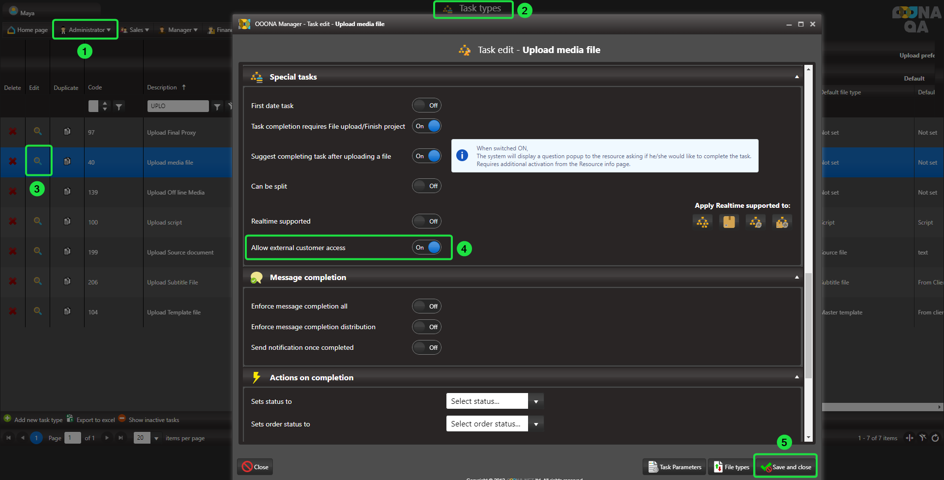 5. The available orders that the customer will be able to upload files to can be limited so that the customer can only upload files to tasks in these orders.
