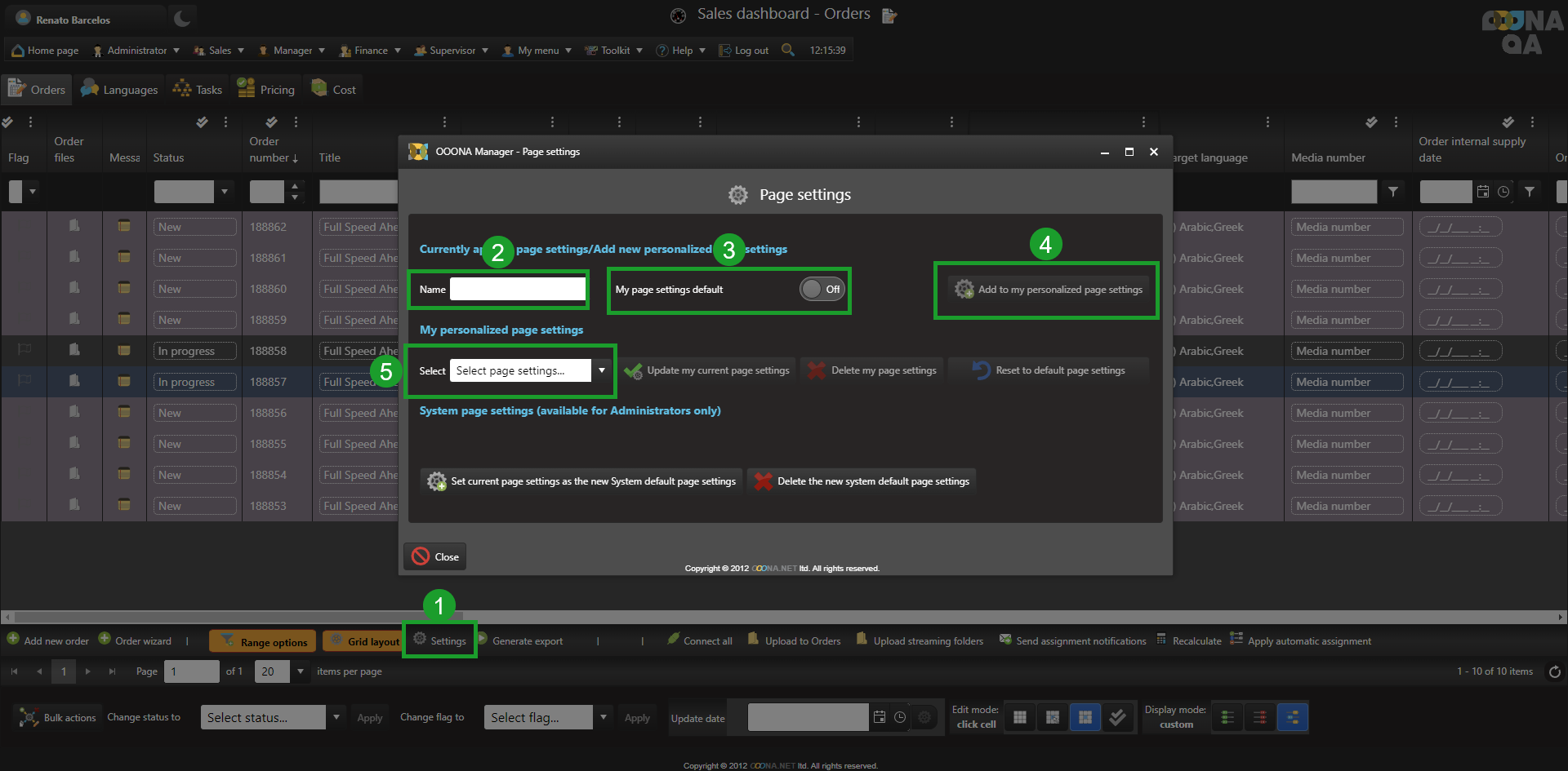 All presets are saved in the “My personalized page settings” dropdown menu (5) and can be applied or modified at any moment.