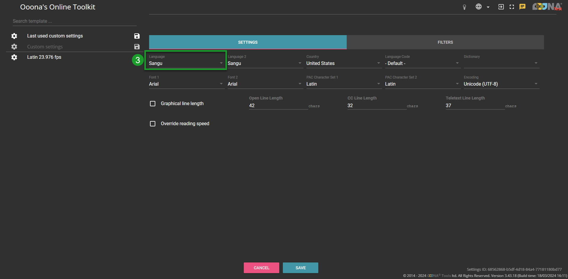 If no language is found, or the language found isn’t the one needed, it can be manually set from the Toolkit settings (2). The language used in the “Language” field will be applied to the “Connected Toolkit language” column (3) once saved.