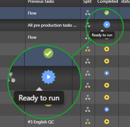 Once assigned, the “Completed” icon will change to indicate the current status of the process:
