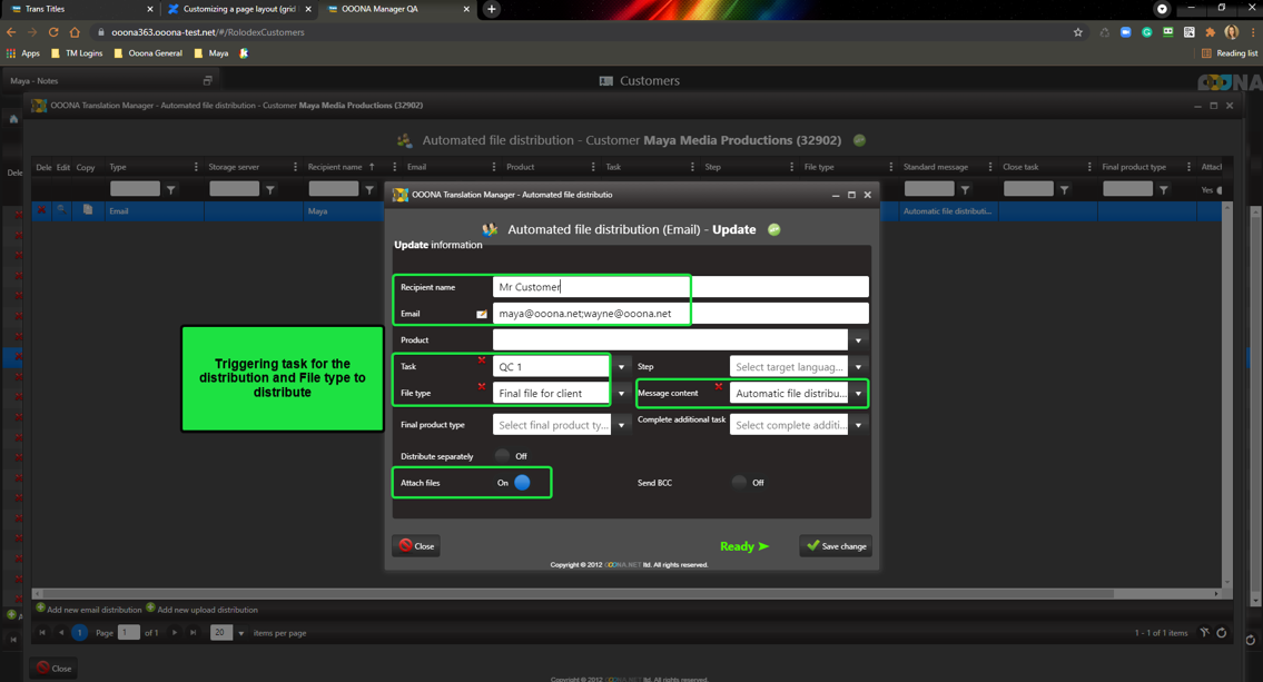 Once the file files are ready, they will be distributed to the customer or to an internal email.
