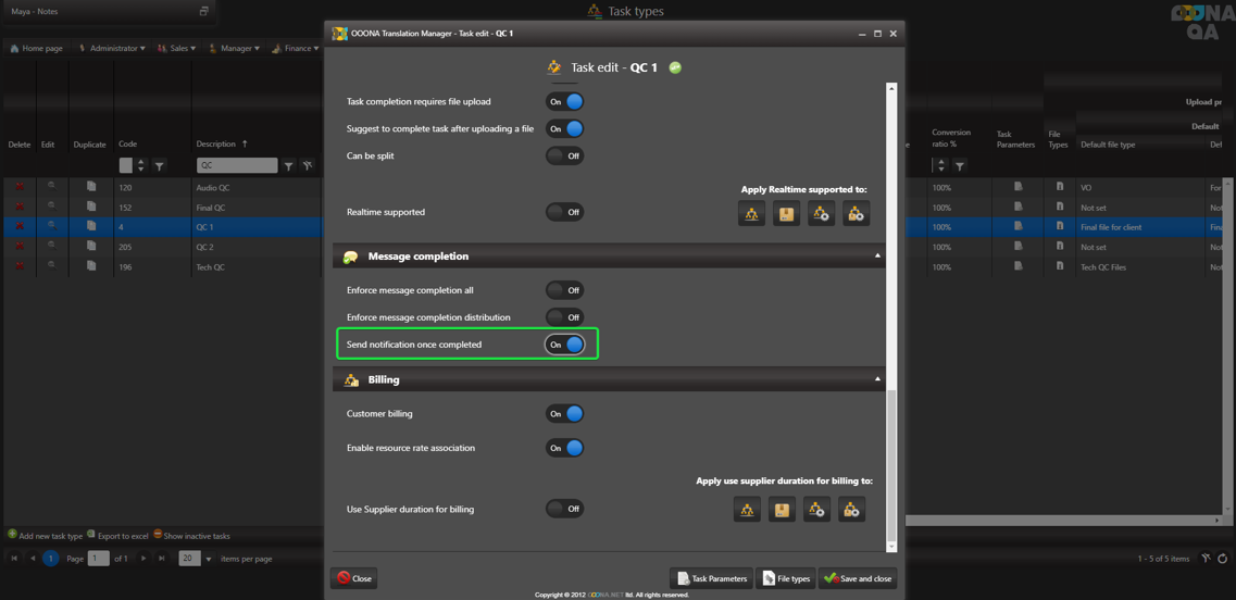 Set the “Suggest to complete task after uploading a file” to ON (Note: this switch requires additional activation from the Task types page) to activate the notification.