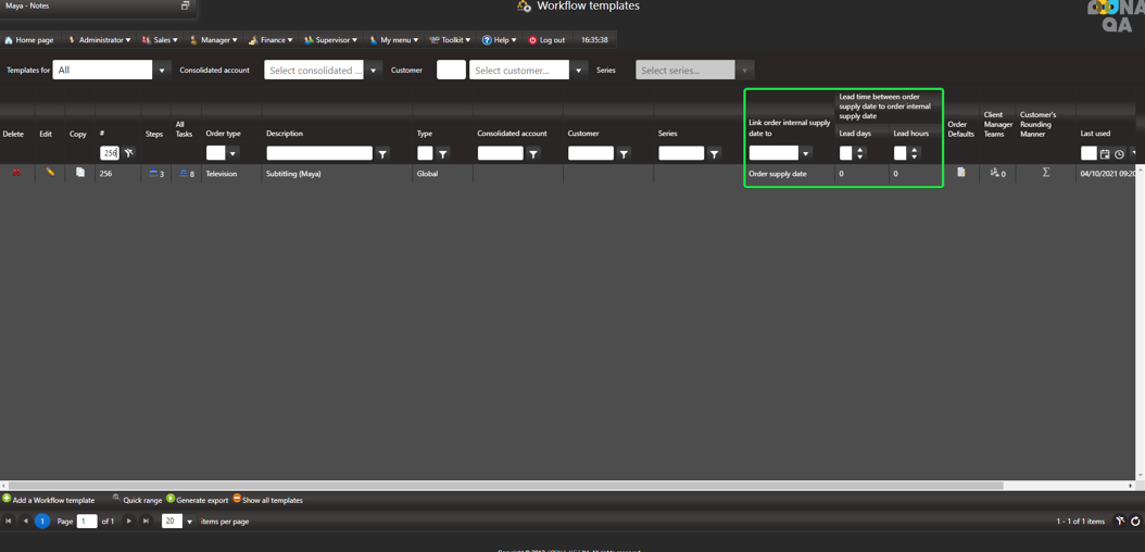 From: Manager > Price lists and Workflow templates > Workflow templates > All tasks