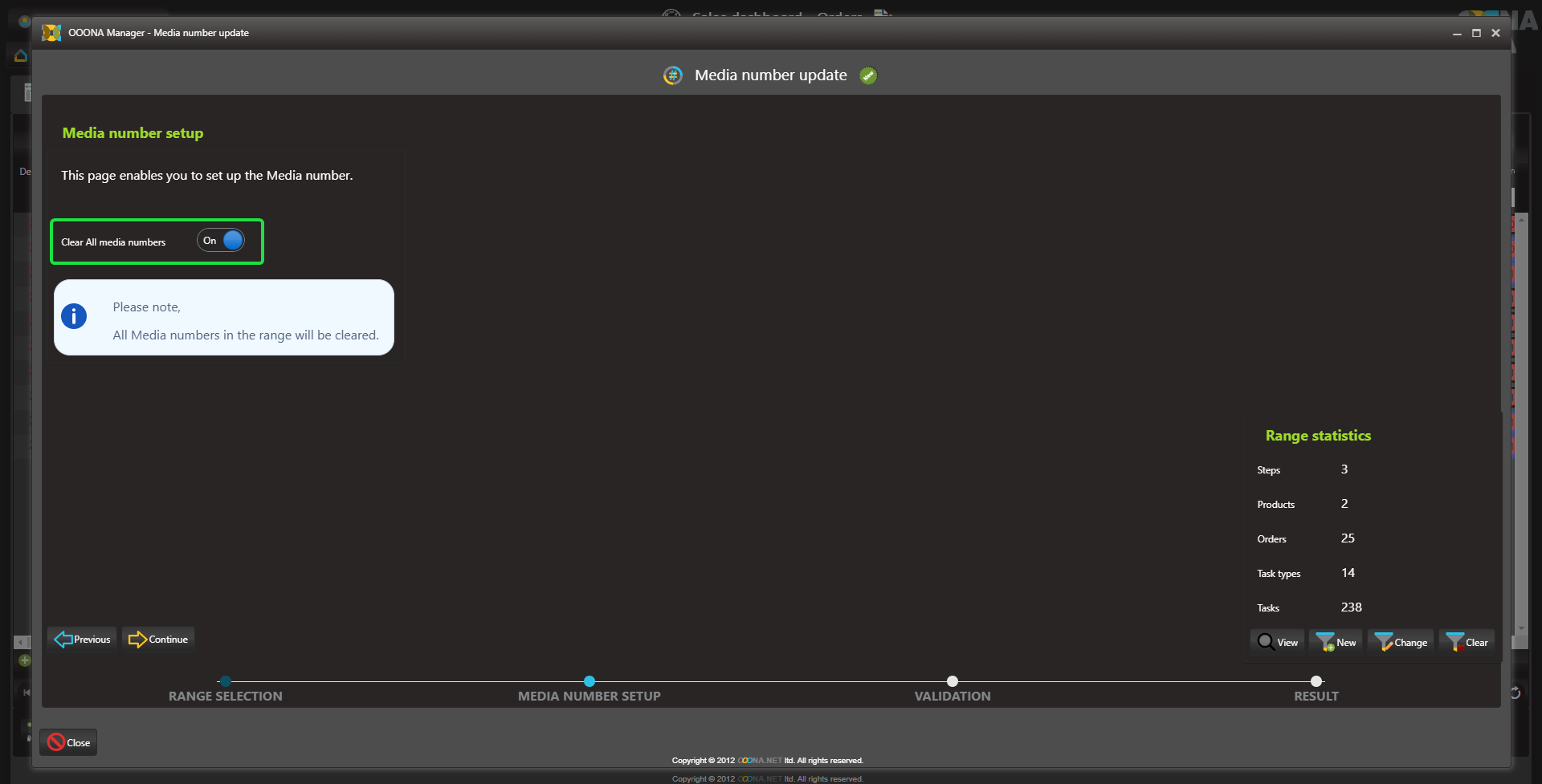 The Media number generator enables to quickly enter consecutive media numbers to multiple orders.