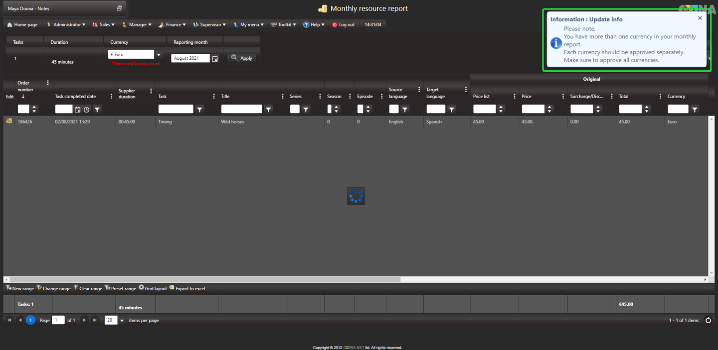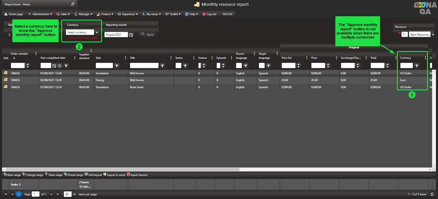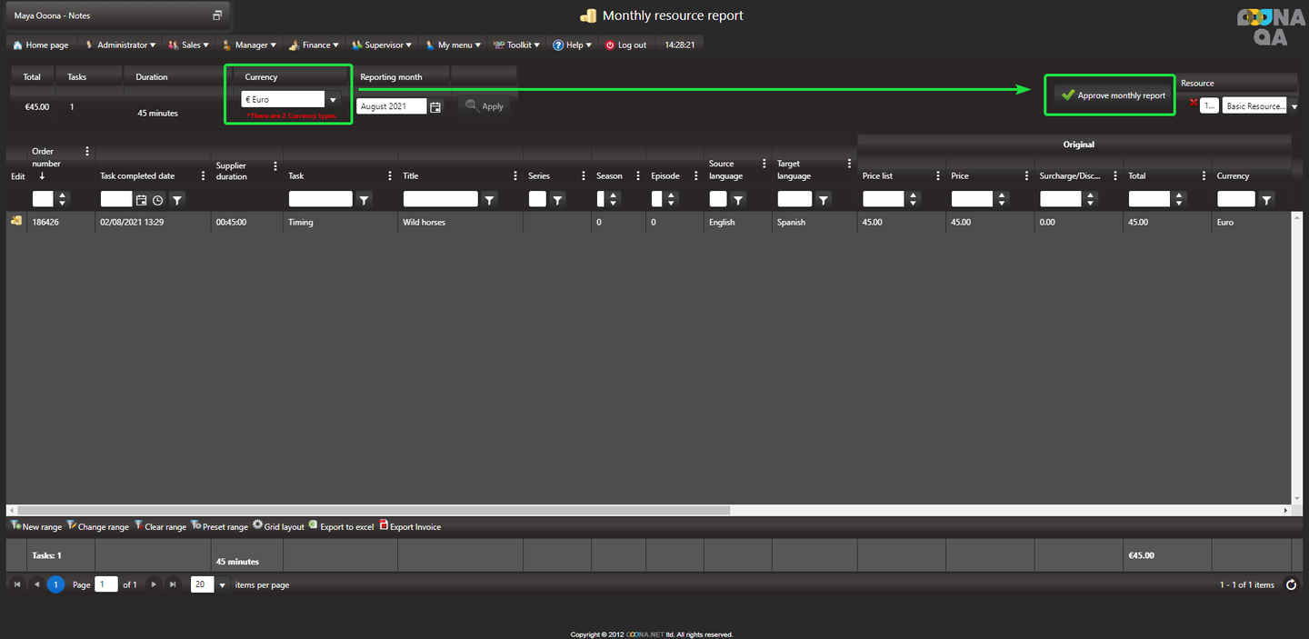 When navigating to your Monthly resource report page, all tasks will be displayed and the “Approve monthly report” button is not available.