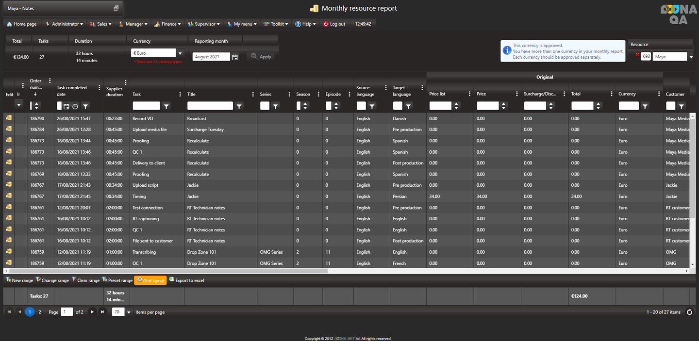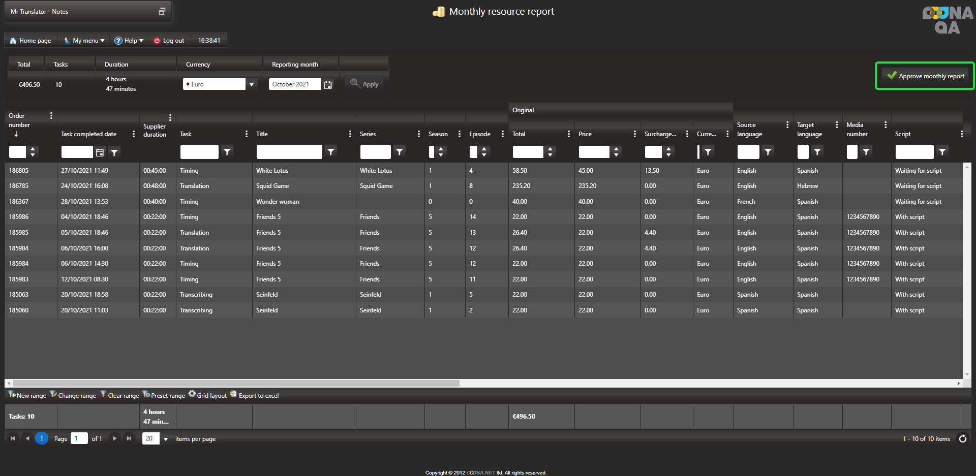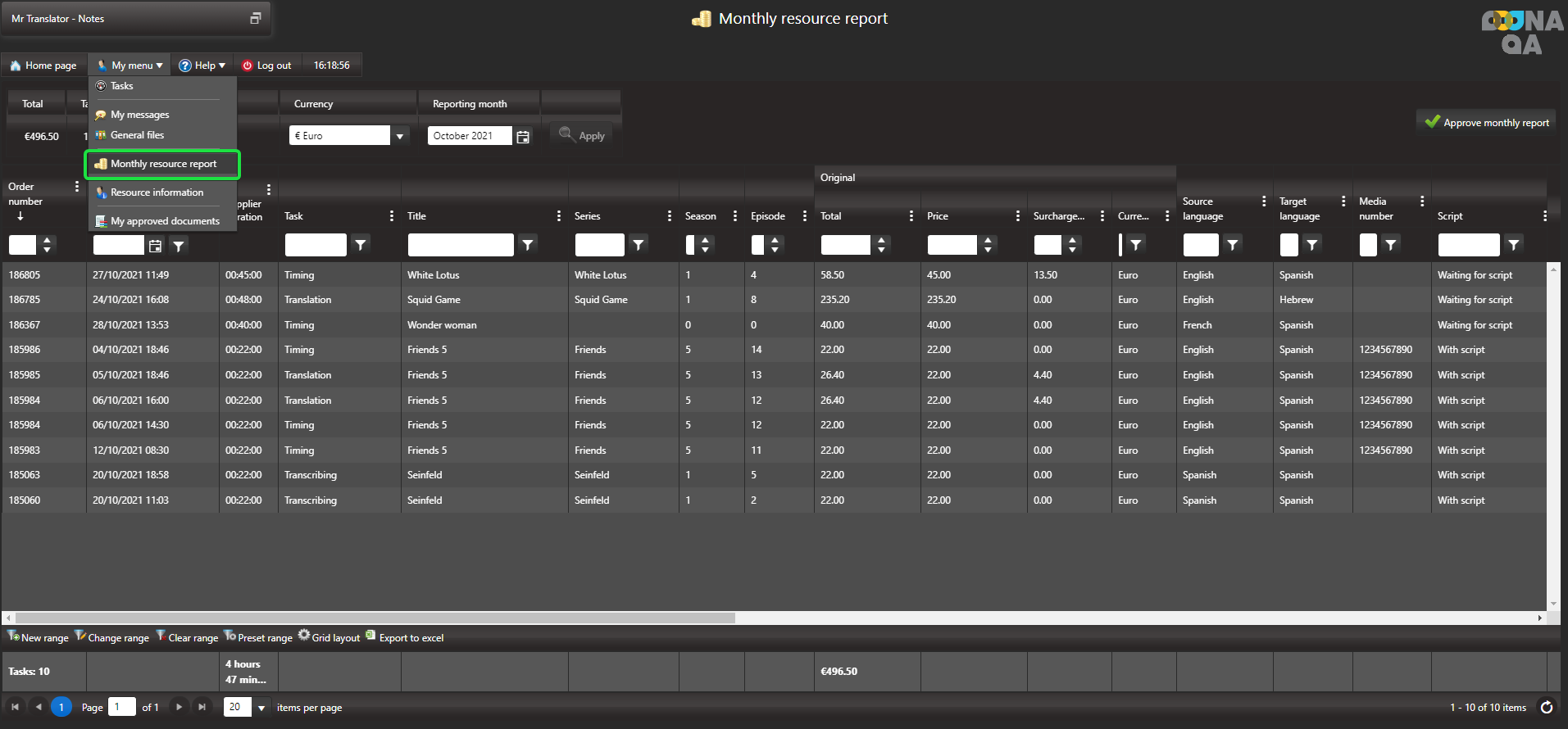 When navigating to your Monthly resource report page, all tasks will be displayed and the “Approve monthly report” button is not available.