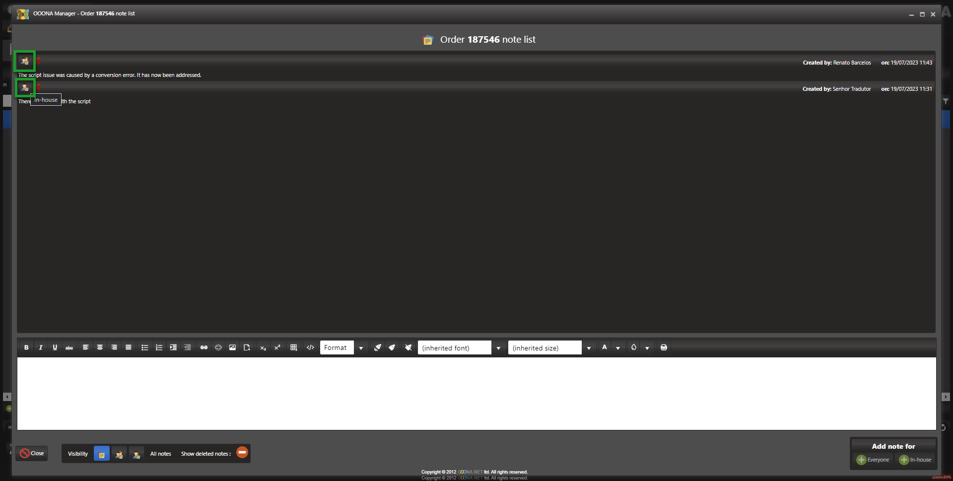 Users will need the Order in-house note role to see In-house notes, create notes (both in-house and everyone), delete other user’s notes, as well as restore deleted notes.
