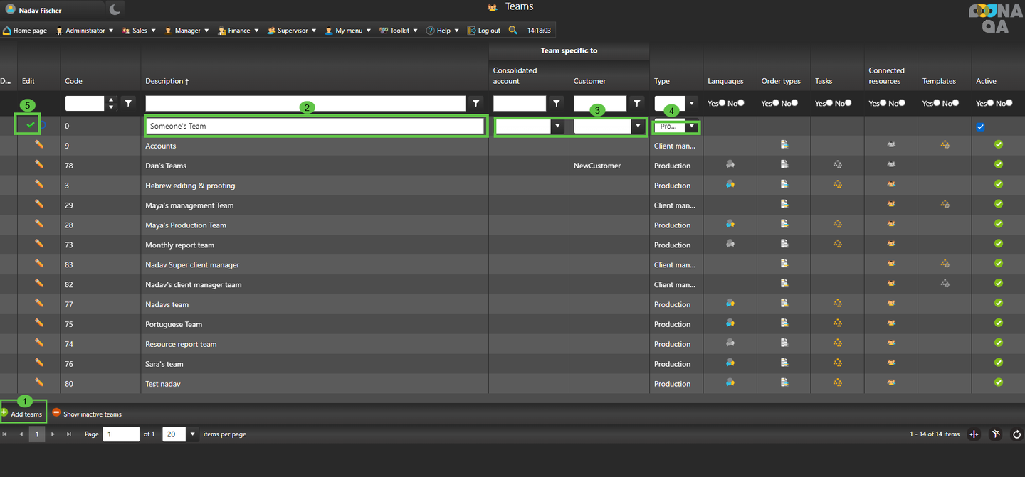 You can always delete or deactivate a Production team with the “Delete” and “Active” buttons.