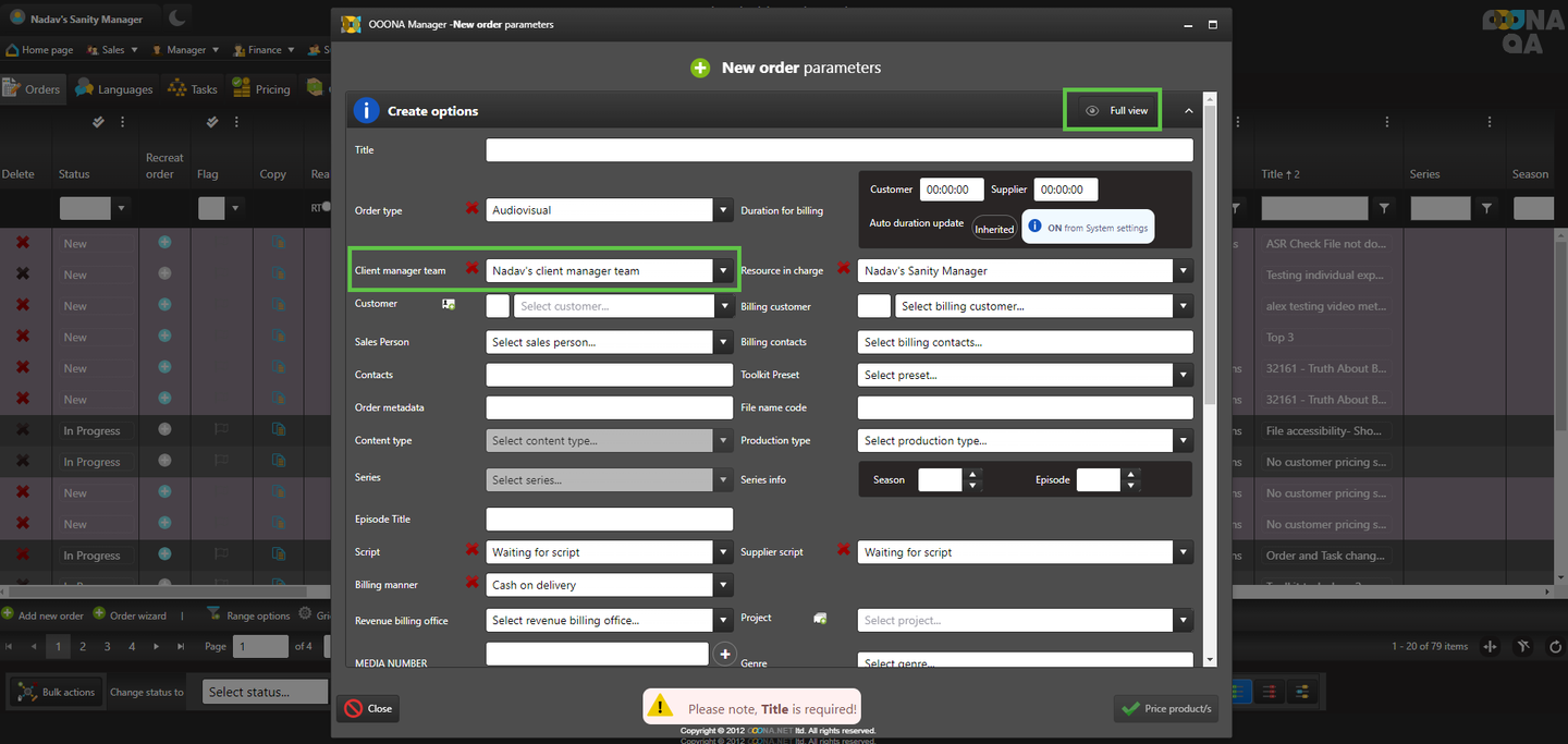 Please note that customer specific teams will only be available in the next version of OOONA Manager: 368.1. -
