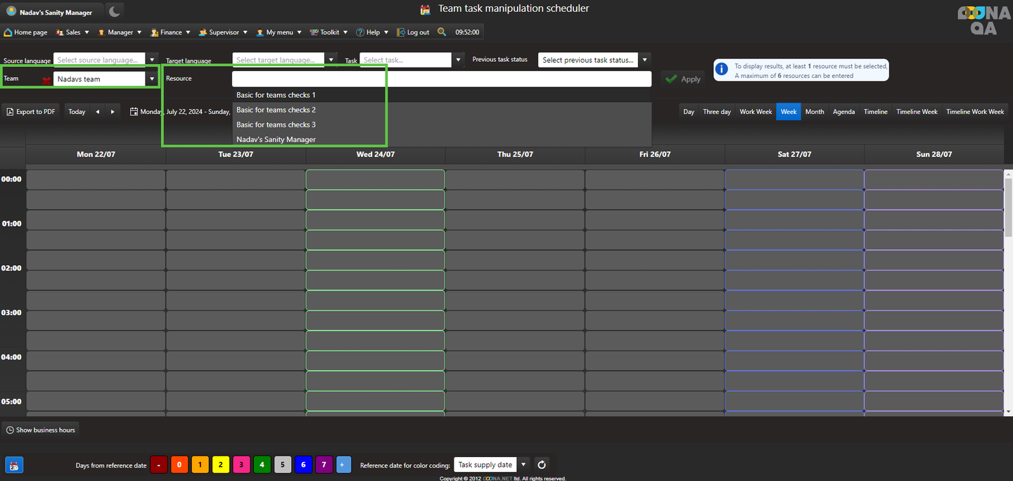 In Supervisor > Schedule > Team tasks assigning scheduler, choose a Production team from the “Team” dropdown menu. Only resources from that production team will be shown in the “Resource” dropdown menu, allowing for an easier view of the resources.