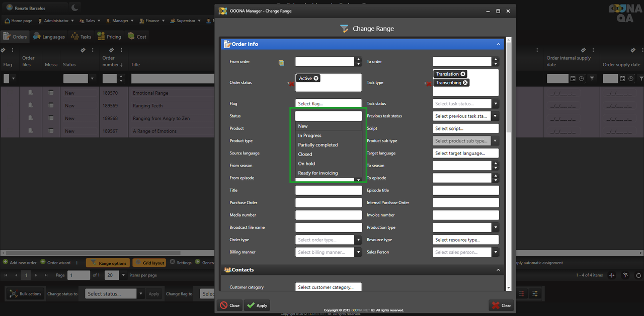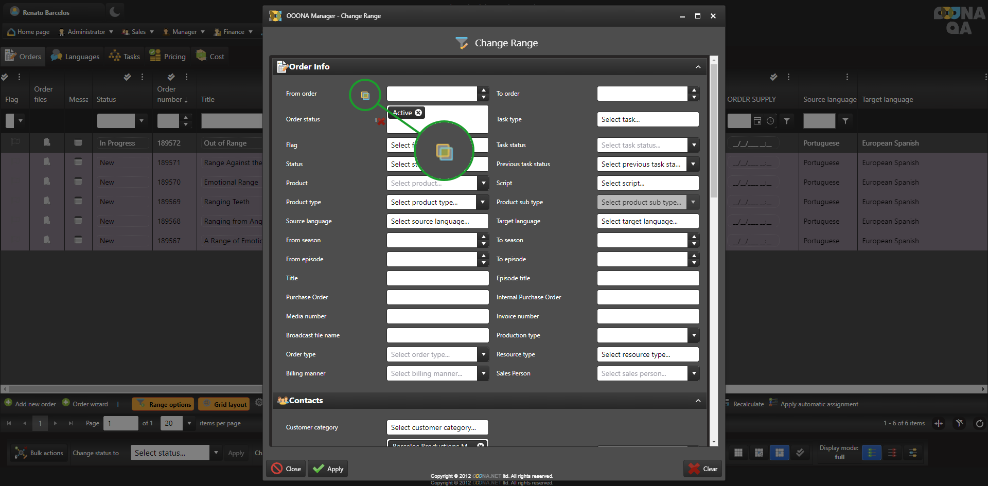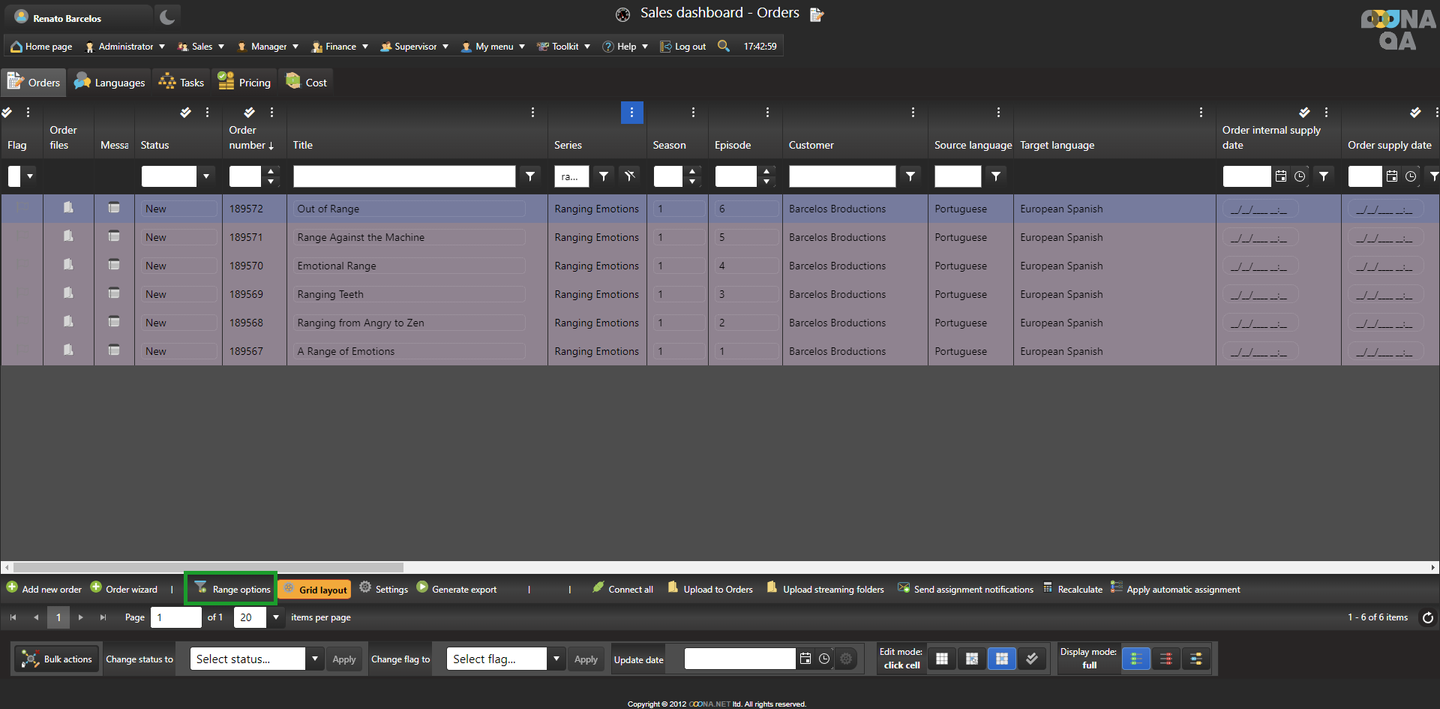From the “In Range” column (1), it indicates if the order is part of the current range or not.