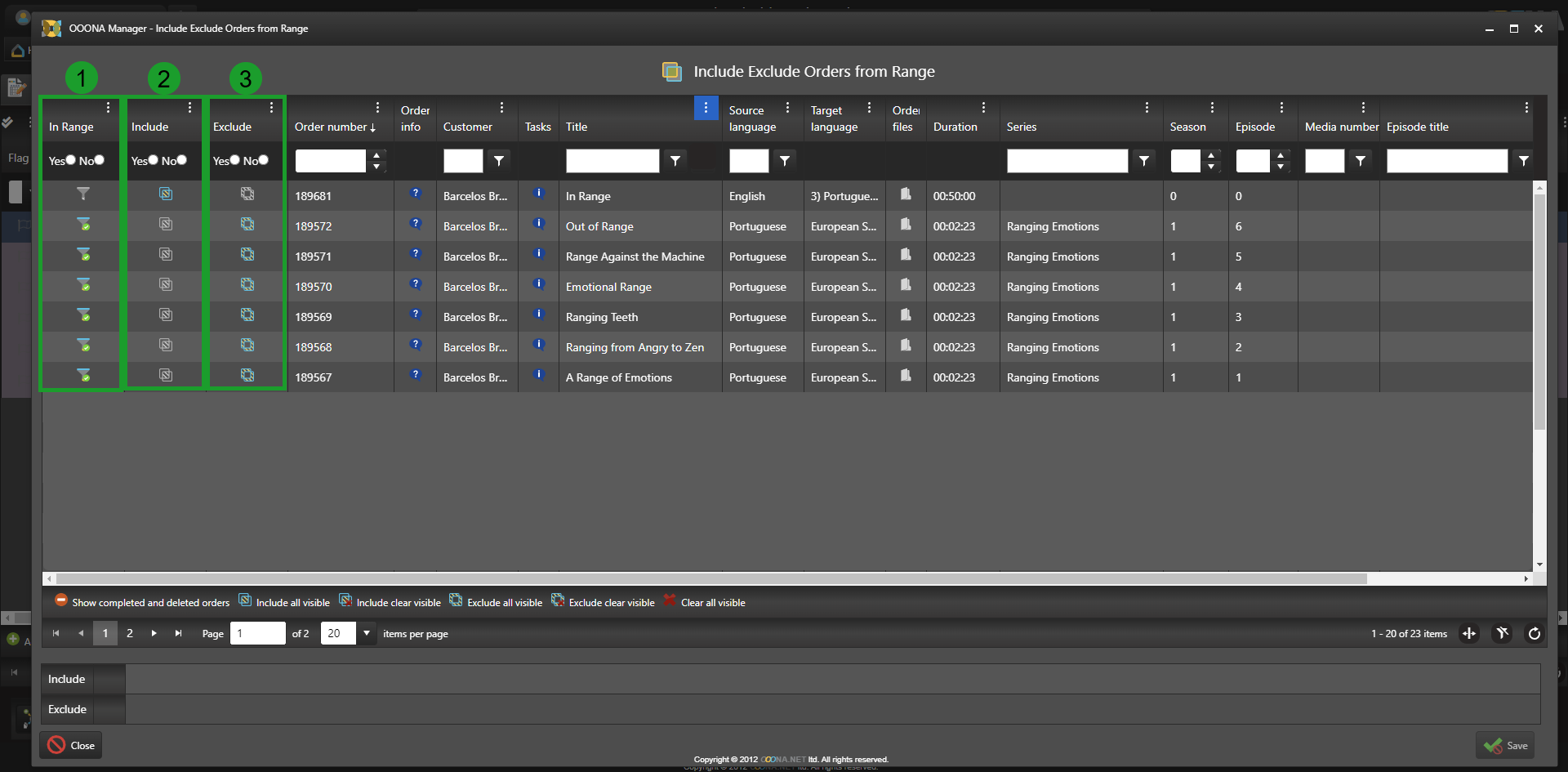 From “Include” (2), we can mark a currently excluded order to be included in the current range.