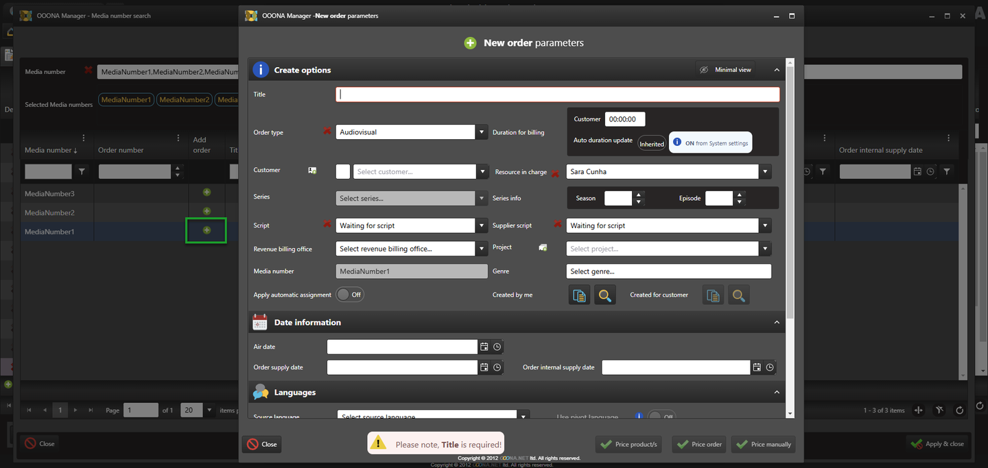 After clicking the icon in the “Add order” column next to the media number, the order creation pop-up will open and the process of order creation can be concluded as usual.