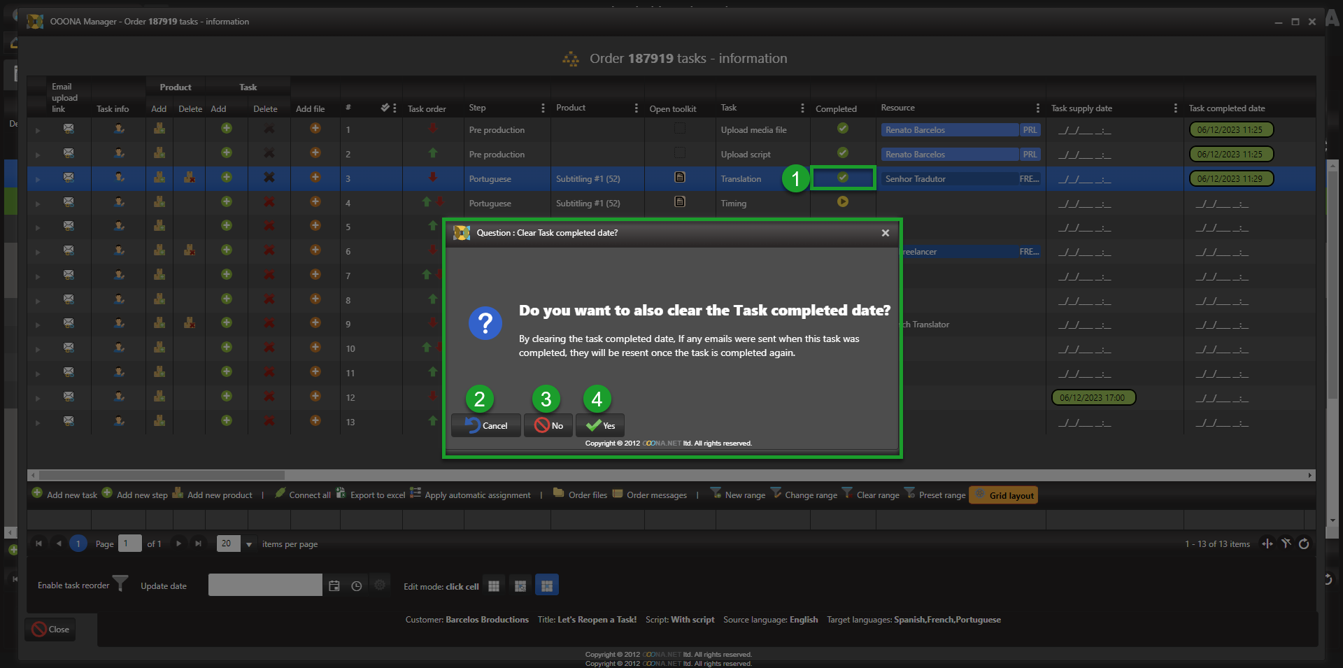By clearing the “Task completed date”, any email distributions triggered by the completion of this task (Task ready notifications, automated file distributions, etc.) will be triggered again.