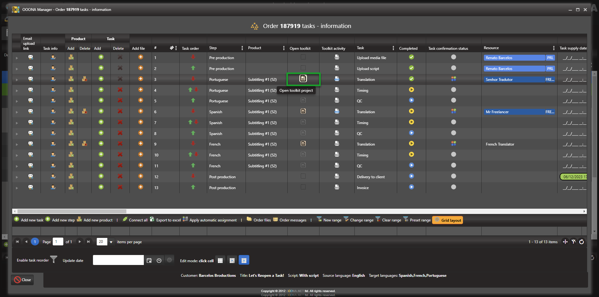 Toolkit projects can be unlocked from within the project itself. A project can be opened from the Tasks information page or the Tasks tab of the Sales dashboard, by clicking on the "Open Toolkit" icon.