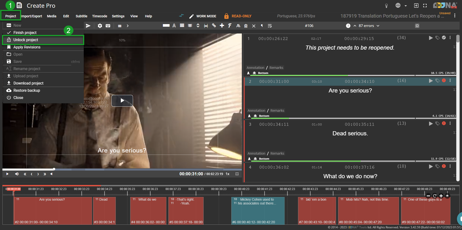 Within the Toolkit, from Project > Unlock project, the project can be made editable again.