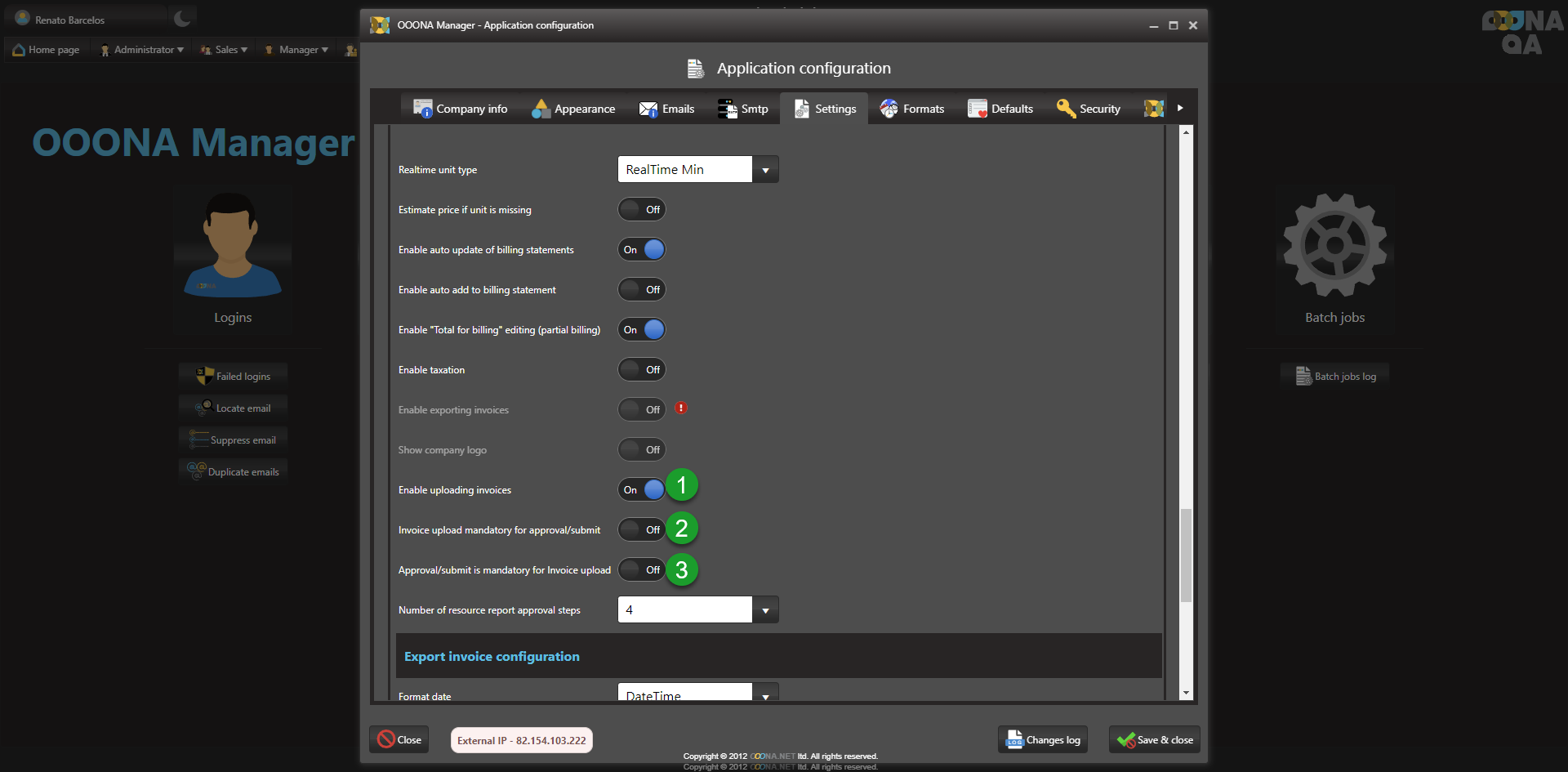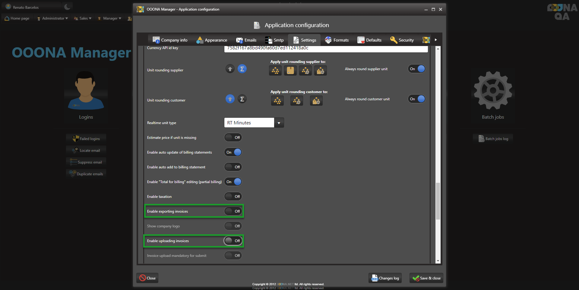 “Enable uploading invoices” will allow users to upload their own invoices to the system.