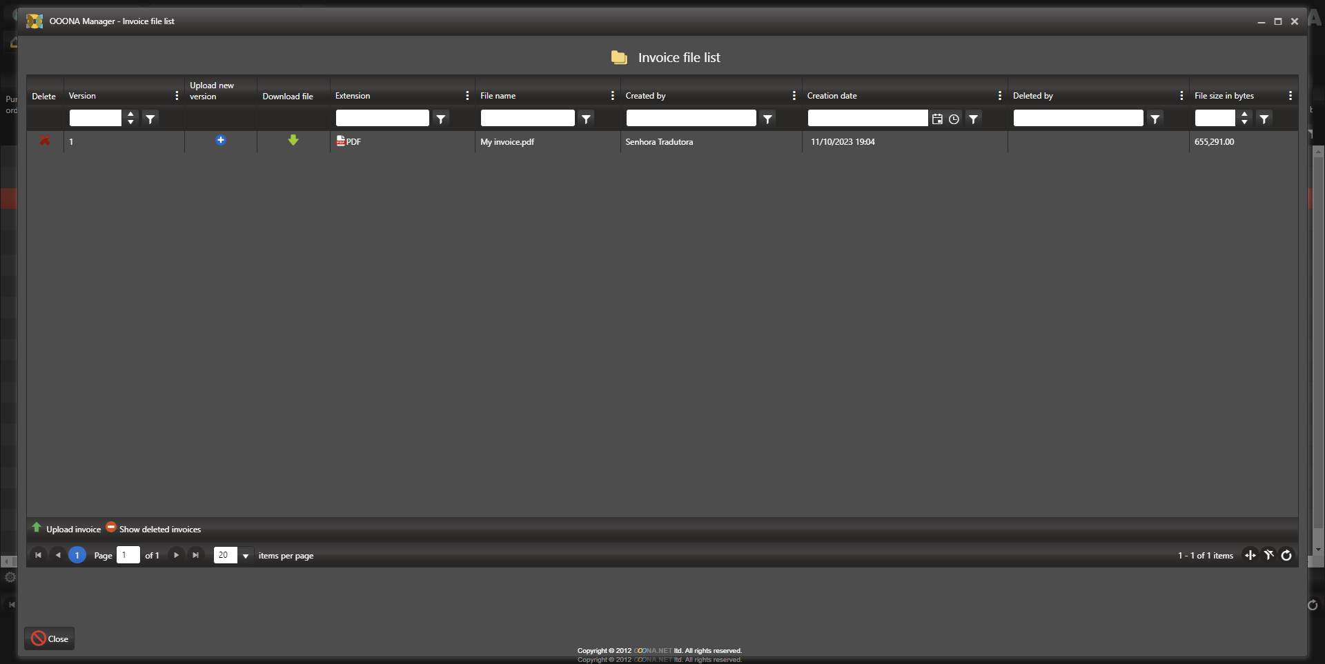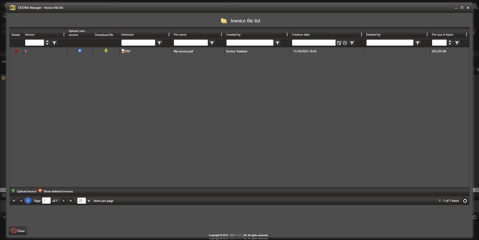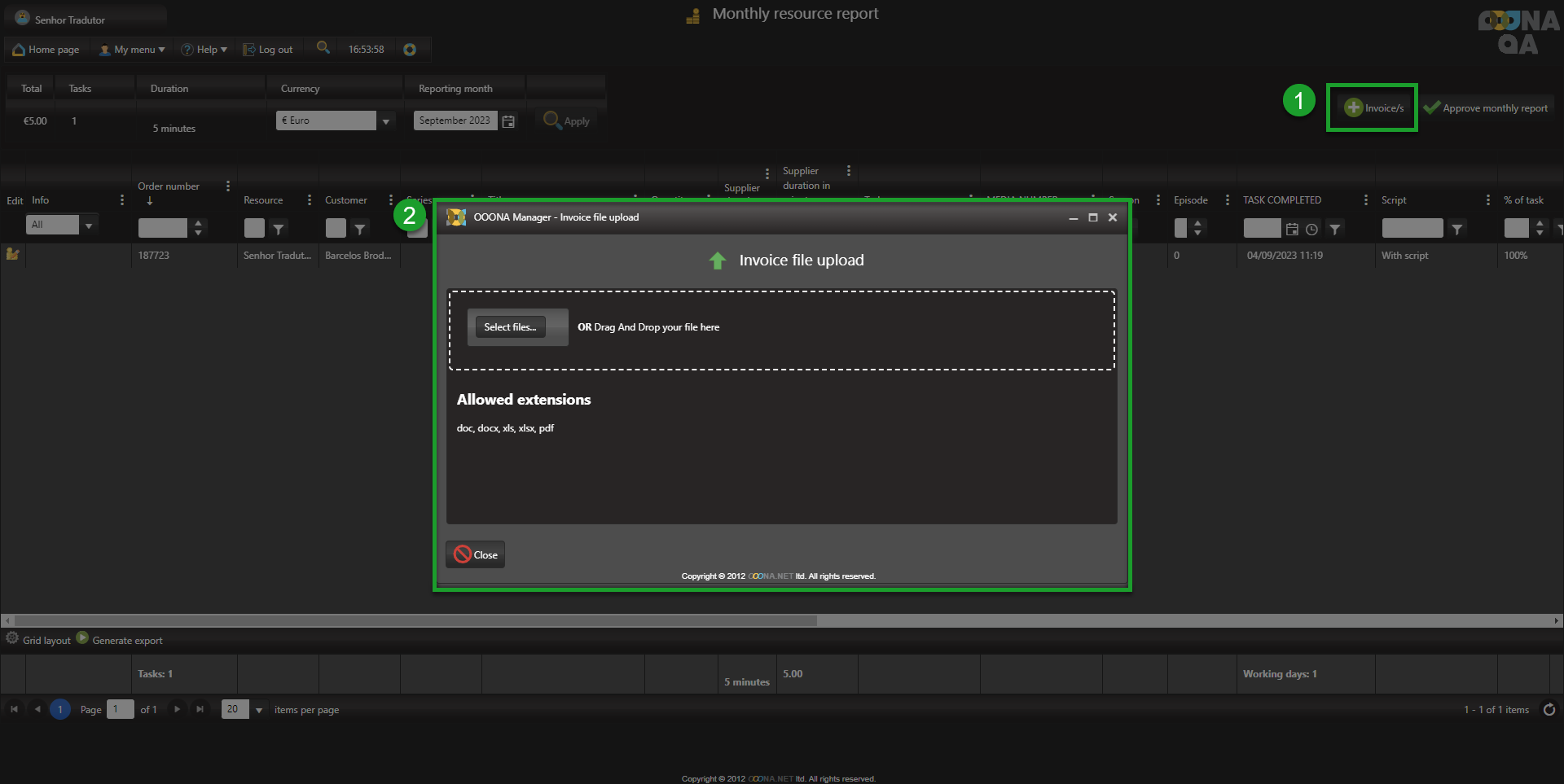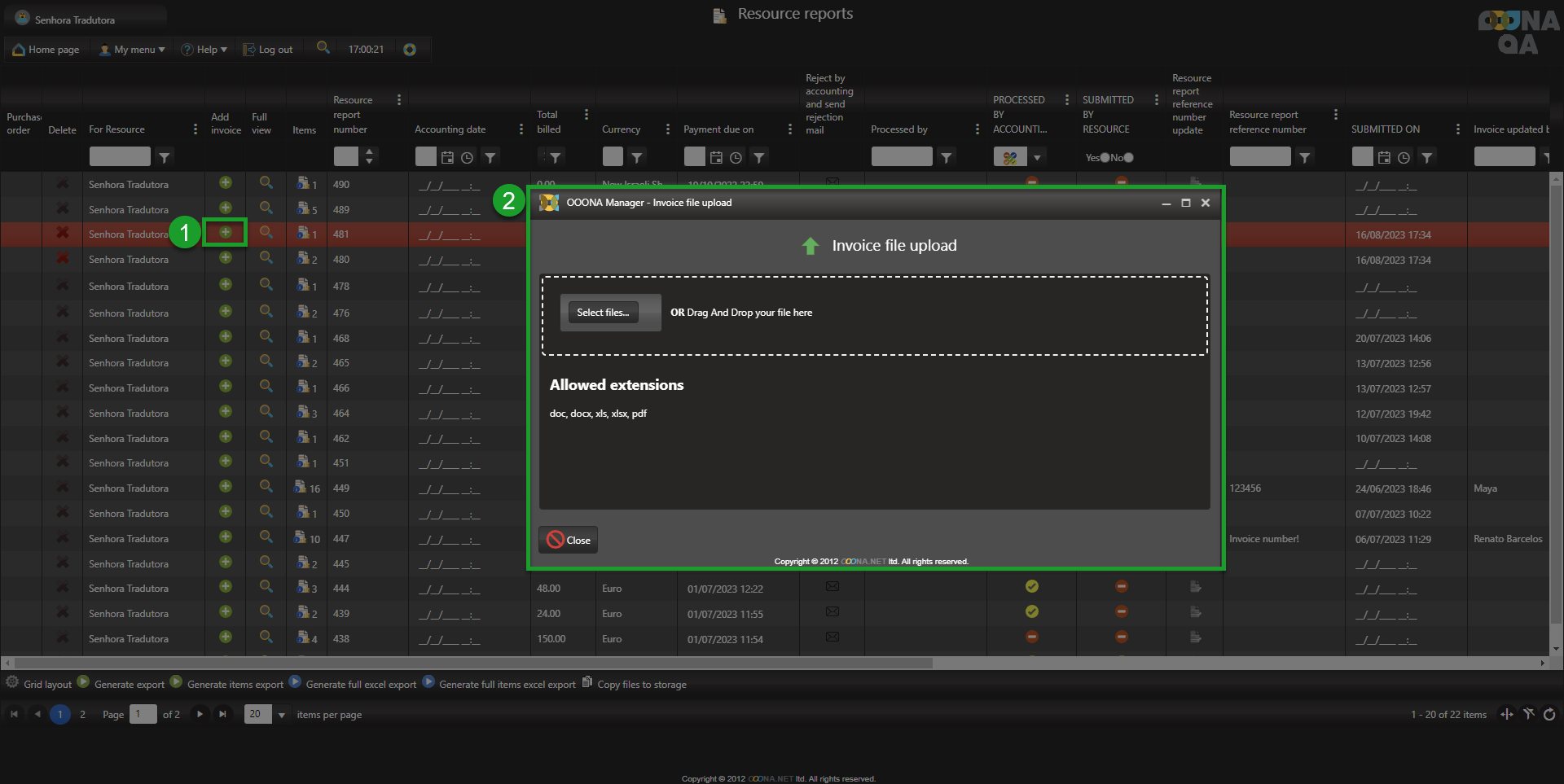 The upload of an invoice can be a requirement to submit a resource report. More info in the Configuration section.