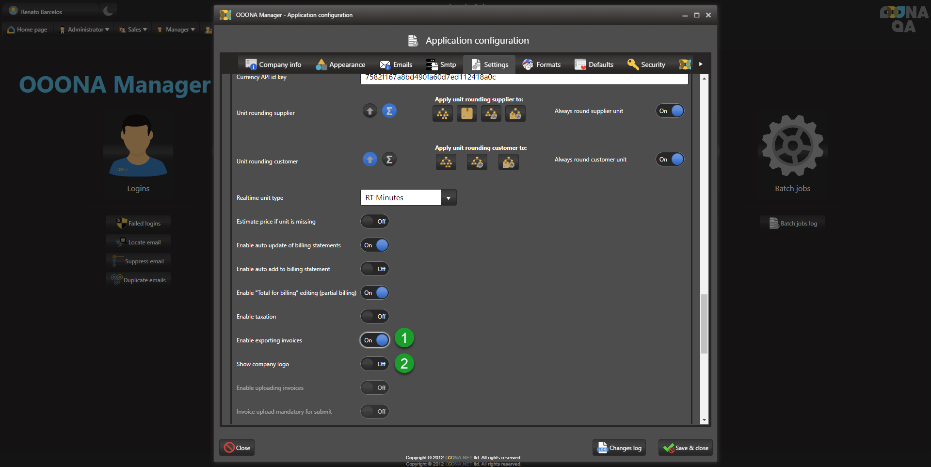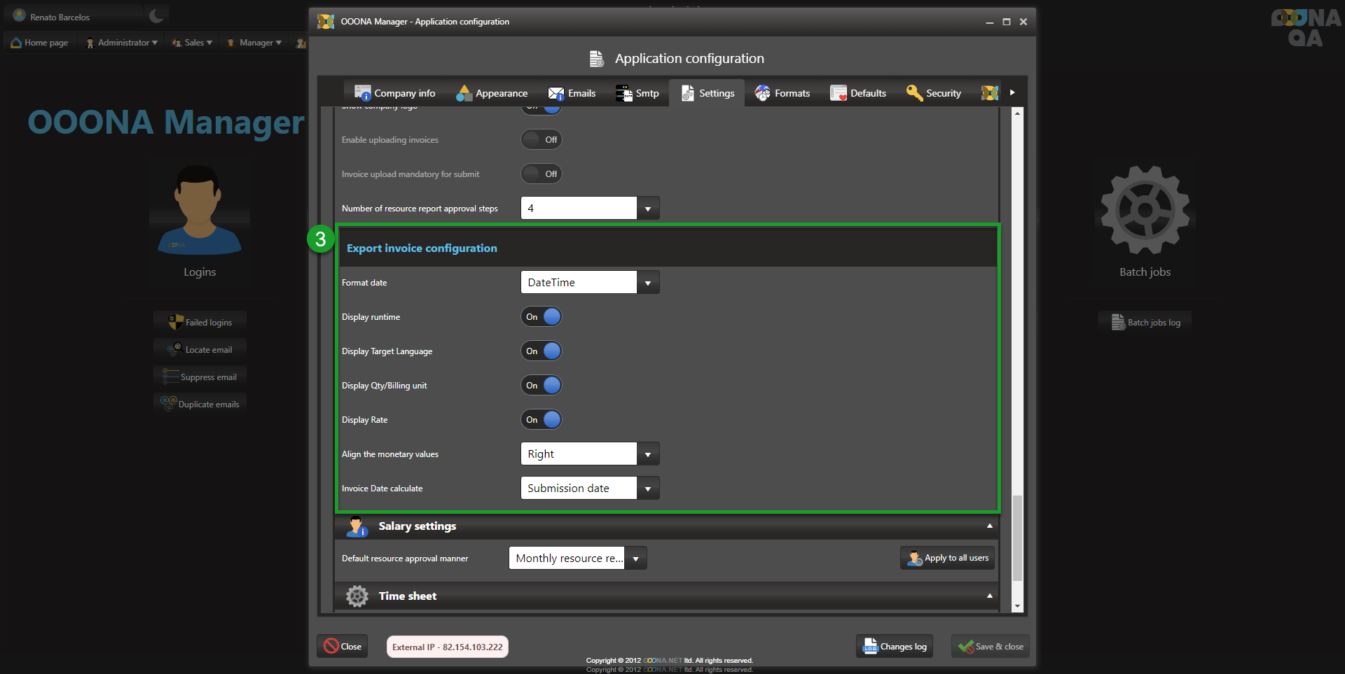 3. (Optional) From the same page, it is also possible to customize the content of the exported invoices: