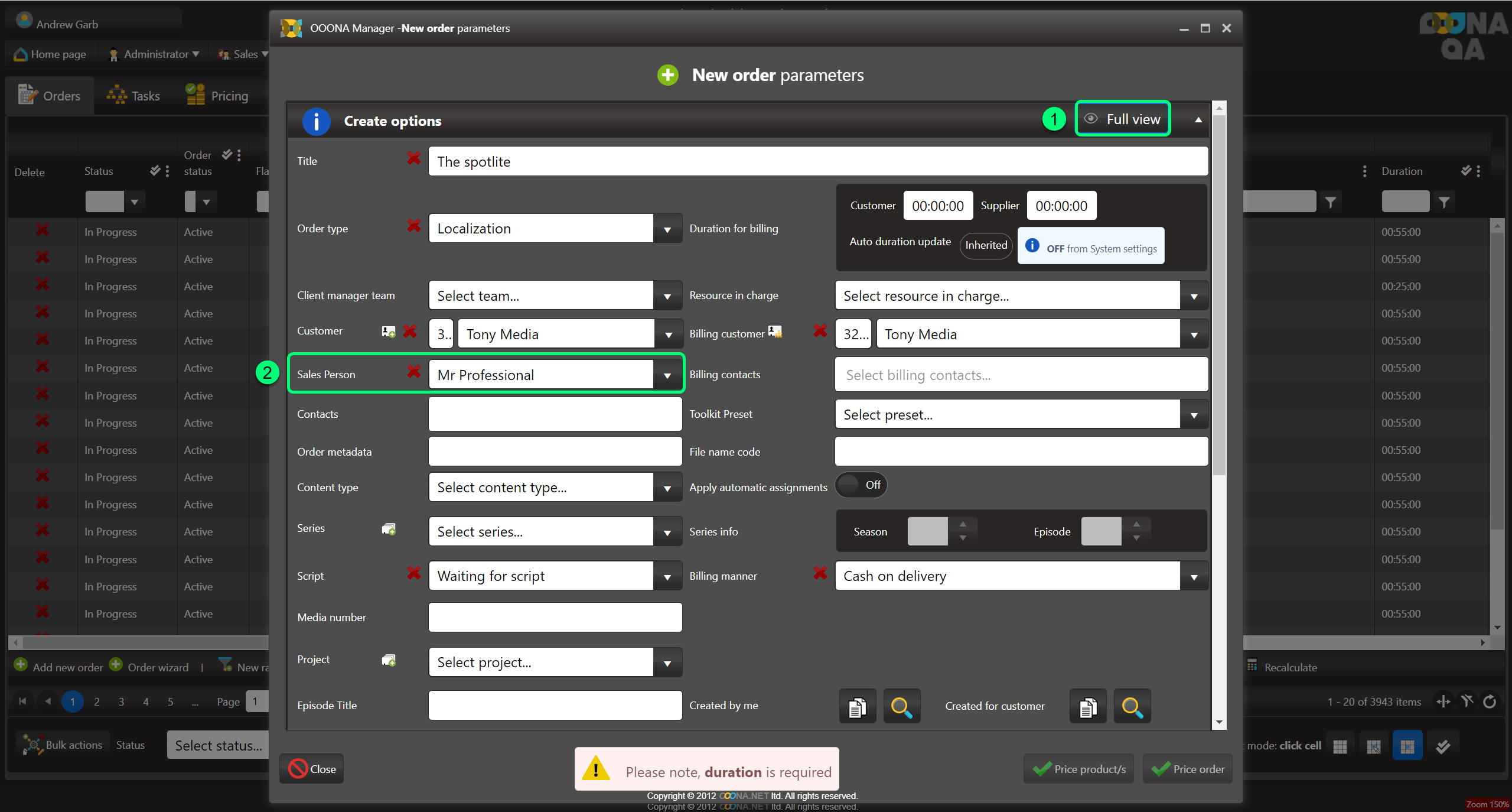 The Salesperson pull-down menu is populated from all the users in the system that are set as Salespeople.