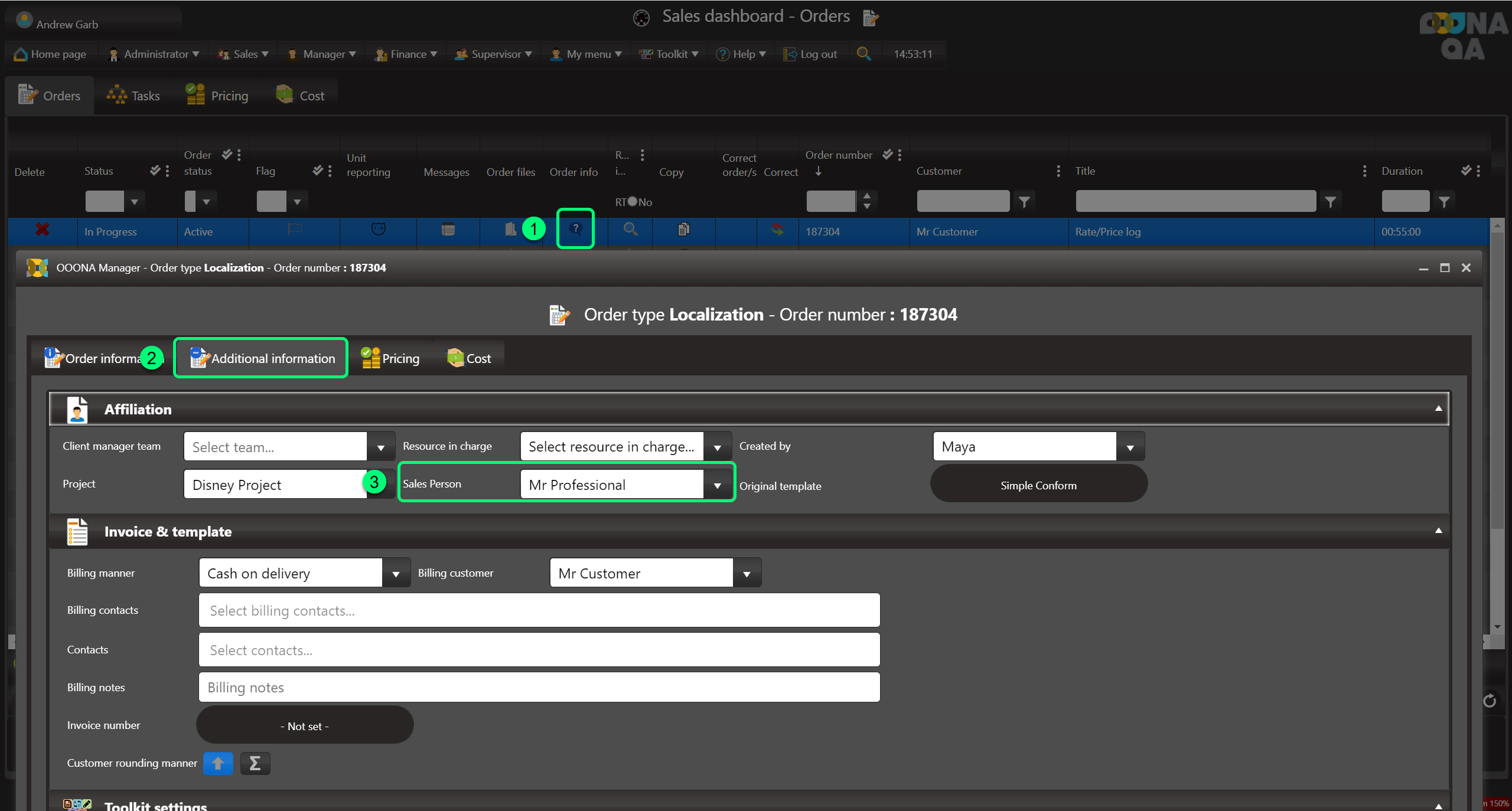 The Salesperson field is filterable from the range allowing you to easily locate orders associated with a specific salesperson