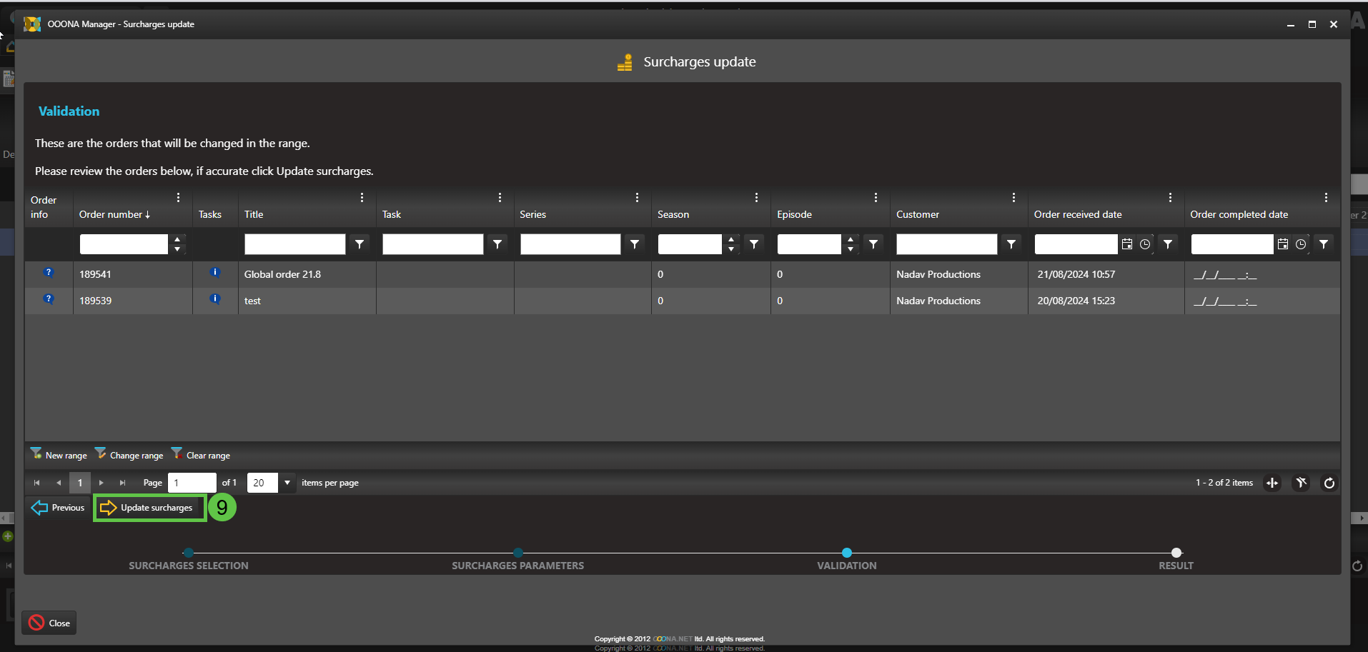 10. In the next screen, confirm that the orders and tasks listed are indeed the ones to be affected, and click Update Surcharge.