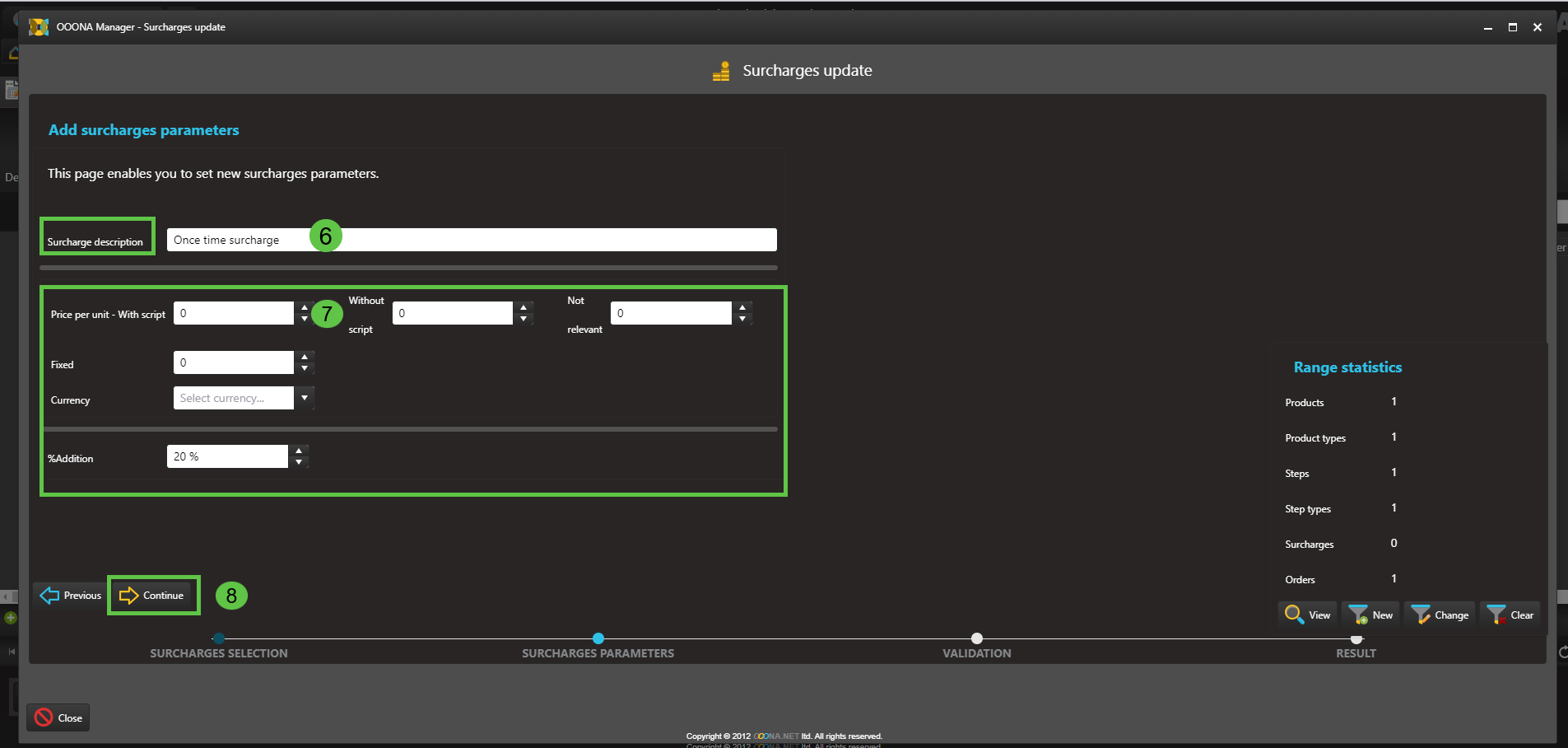 Click on Surcharges to open the Bulk surcharge update wizard.