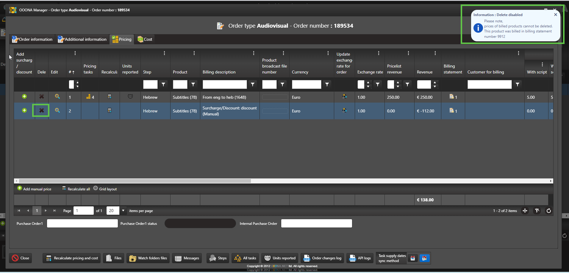 Note that surcharges that have already been issued in a billing statement cannot be deleted.