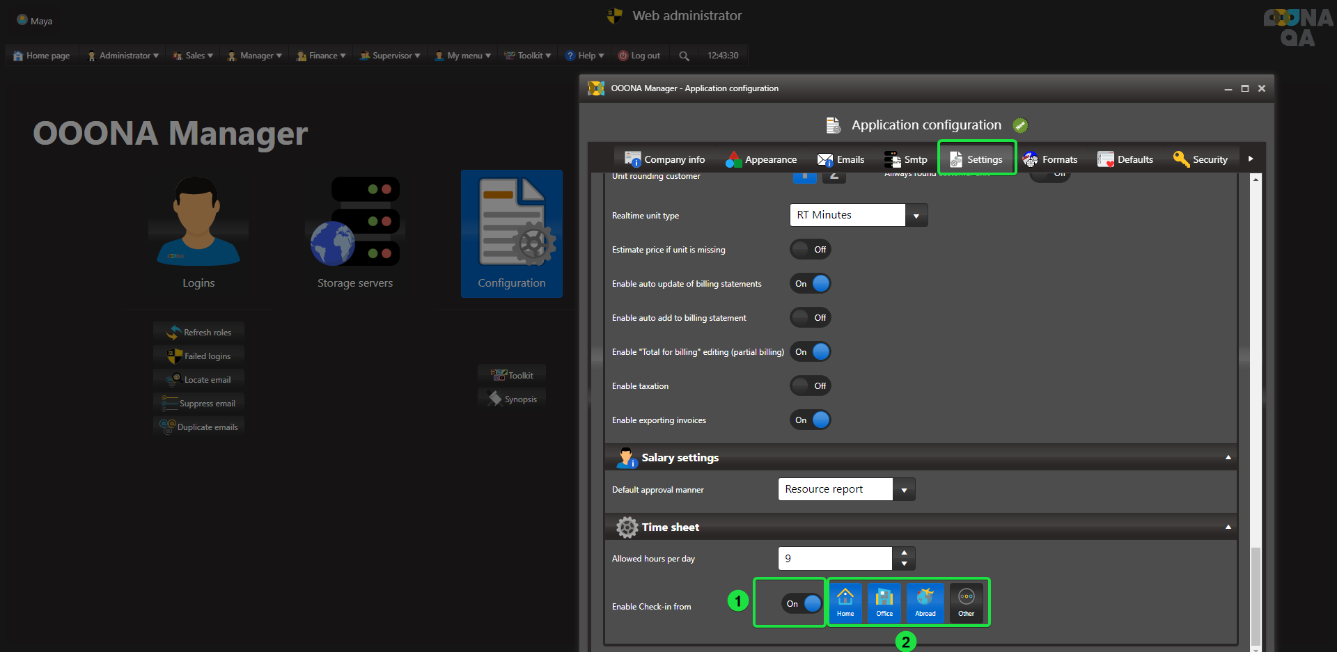 To enable location selection for all enabled users click “Enable check-in from” (fig 1)