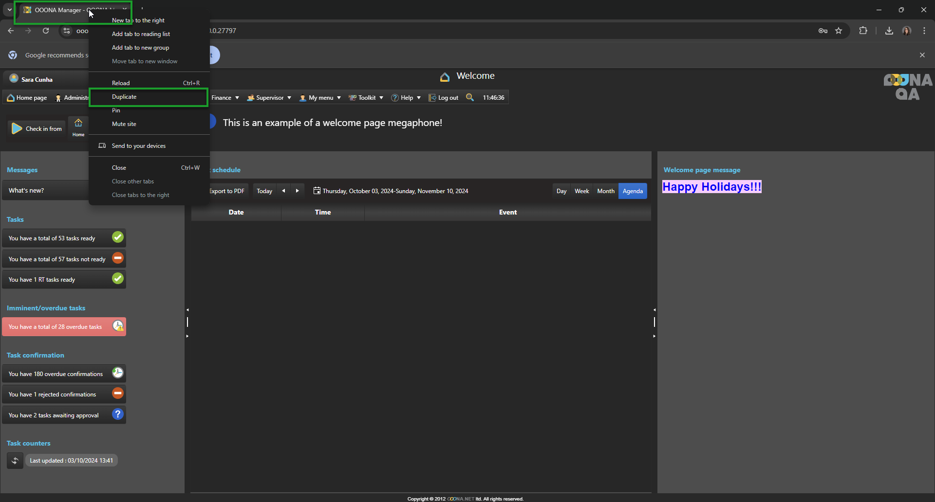 If you open a new tab and log in again, the OOONA Manager will log you out of the first session you had open.