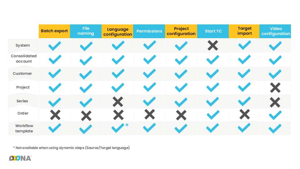 The system will apply the configuration it finds at the lowest level (starting from the Workflow template) and, if no configuration is found at that level, it will look for it in the level above, until a configuration is found.