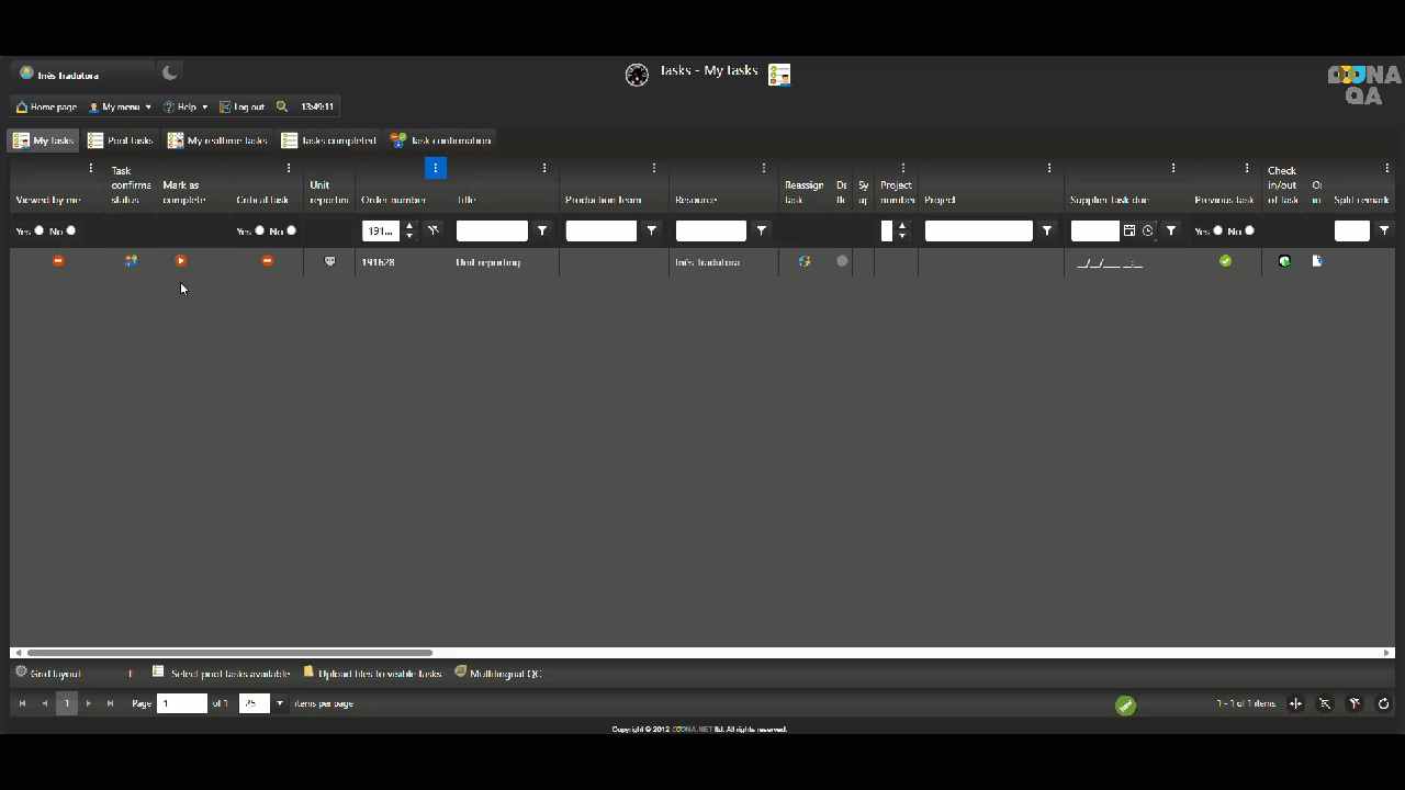 The unit reporting icon is shown in Sales dashboard > Orders, Tasks, Pricing and Cost tabs, Order info > Pricing and Cost tabs as well as My menu > My tasks, Pool tasks, My realtime tasks and Tasks completed tabs.